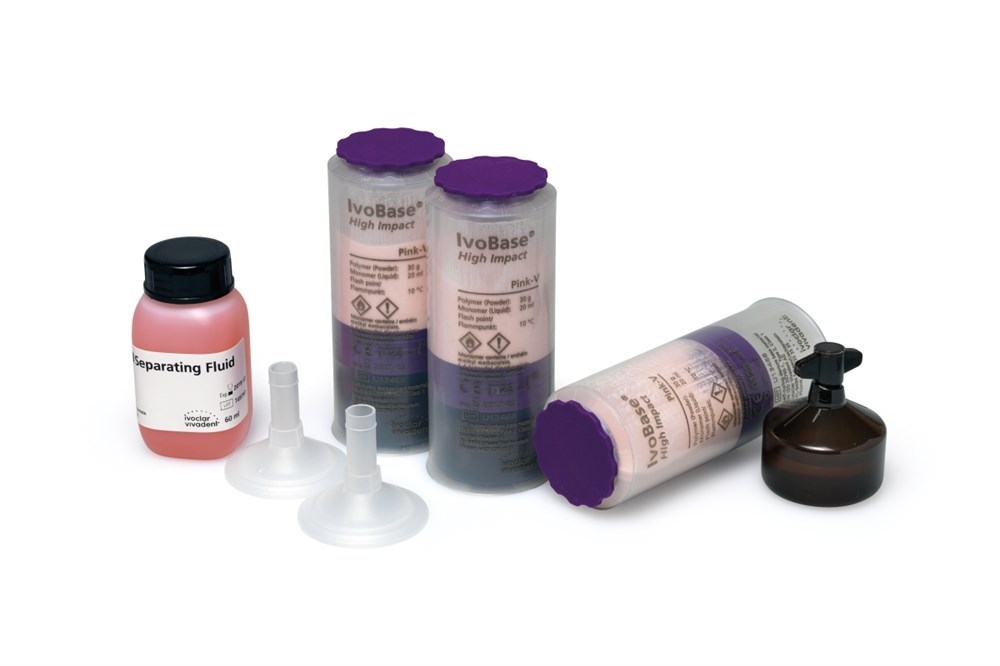 IvoBase High Impact Kit цвет Preference сочетает в себе высокое качество пластмасс горячей полимеризации и удобство обработки автополимеризатов, создавая при этом новый класс протезных пластмасс. Материал, базирующийся на PMMA, обрабатывается в инжекторе IvoBase Injector. Соответствует нормам EN ISO 20795-1.