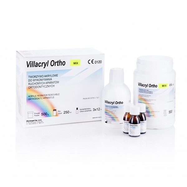 Villacryl Ortho Mix (Виллакрил Орто Микс) пластмасса холодной полимеризации предназначена для изготовления съёмных ортодонтических аппаратов методом накладывания теста на модель.