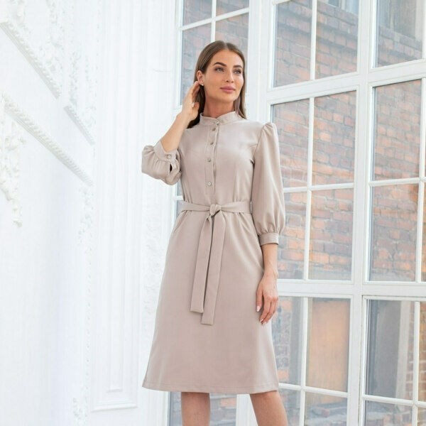 Платье Beauty бренда Dr.Nice имеет длину миди, рукав 3/4, а также воротник-стойку и планку. Модель дополнена карманами, которые расположены в рельефах. Идёт в комплекте с поясом.