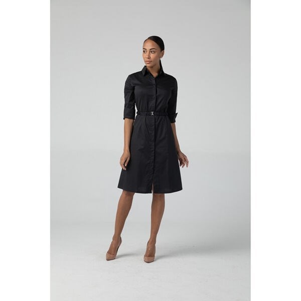 Платье-халат Dr.Nice с рукавом ¾ с отворачивающимися манжетами выполнено в классическом крое на супатной застежке. Модель дополнена двумя карманами в боковых швах и эластичным поясом с пряжкой.