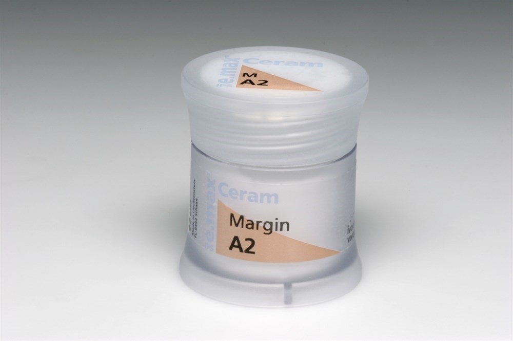 IPS e.max Ceram Margin 20 г A2 с естественной флюоресцентностью шейки зуба, служат для создания керамических уступов на каркасах IPS e.max ZirCAD. Благодаря разнице в температуре обжига с массами дентина и режущего края имеют высокую стабильность при обжиге.