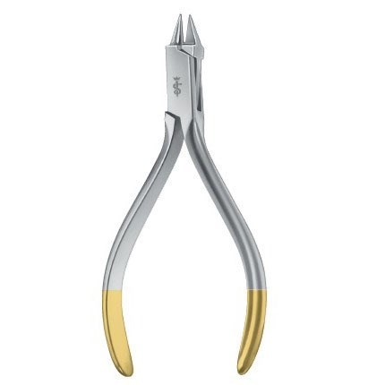 Плоскогубцы, DP309R, B.Braun (Aesculap, Германия) изготовлены из нержавеющей стали со вставками из карбида вольфрама, имеют две полукруглые рукоятки с гладкой поверхностью. Рабочая часть укороченная, состоит из особой конструкции: одна щечка имеет выпуклую конусовидную форму, вторая - плоская, пирамидальной формы. Инструмент предназначен для формирования и закрытия петли.