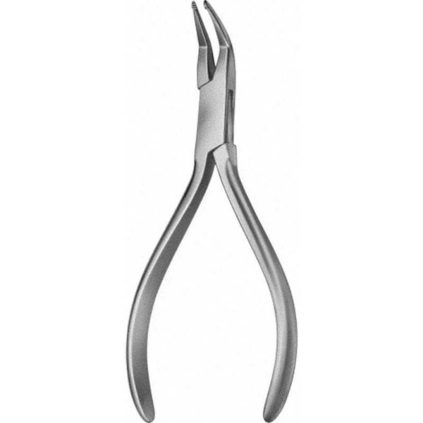 Плоскогубцы, по HOW, изогнутые, длина 145 мм, DP390R, B.Braun (Aesculap, Германия) изготовлены из нержавеющей стали, имеют две полукруглые рукоятки с гладкой поверхностью на внешней стороне. Рабочая часть удлиненная, на концах щечек нанесены крестообразные насечки для надежного удержания дуги. Инструмент применяется для работы с дугами, а именно: для установки дуги в щечные трубки на молярах и извлечение дуги; для загиба дуги дистально, например, при активации дуги с закрывающими петлями и т.д.; для установки губного бампера.