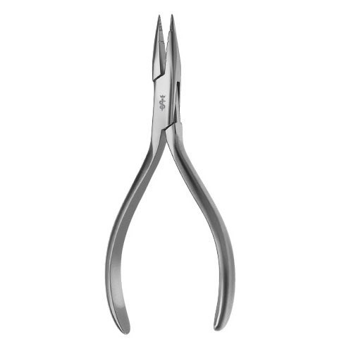 Плоскогубцы, по JARABAK, для проволоки диаметр 0,7 мм, длина 140 мм, DP308R, B.Braun (Aesculap, Германия) изготовлены из нержавеющей стали, имеют две полукруглые рукоятки с гладкой поверхностью. Рабочая часть удлиненная, состоит из особой конструкции: одна щечка имеет пирамидальную форму с тремя удерживающими канавками, вторая - плоская, с поперечными насечками, которые крепко удерживают проволоку в правильном положении при выполнении изгиба. Инструмент предназначен для формирования и закрытия петли.