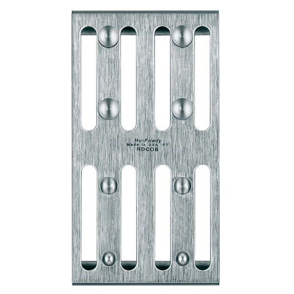 Подставка для коффердама с кламмерами от американского бренда Hu-Friedy предназначена для грамотного распределения вспомогательного инвентаря в кассете IMS. Подставка вмещает до 8 элементов для стерилизации. Специальные зажимы позволяют обрабатывать коффердам в расправленном виде.
