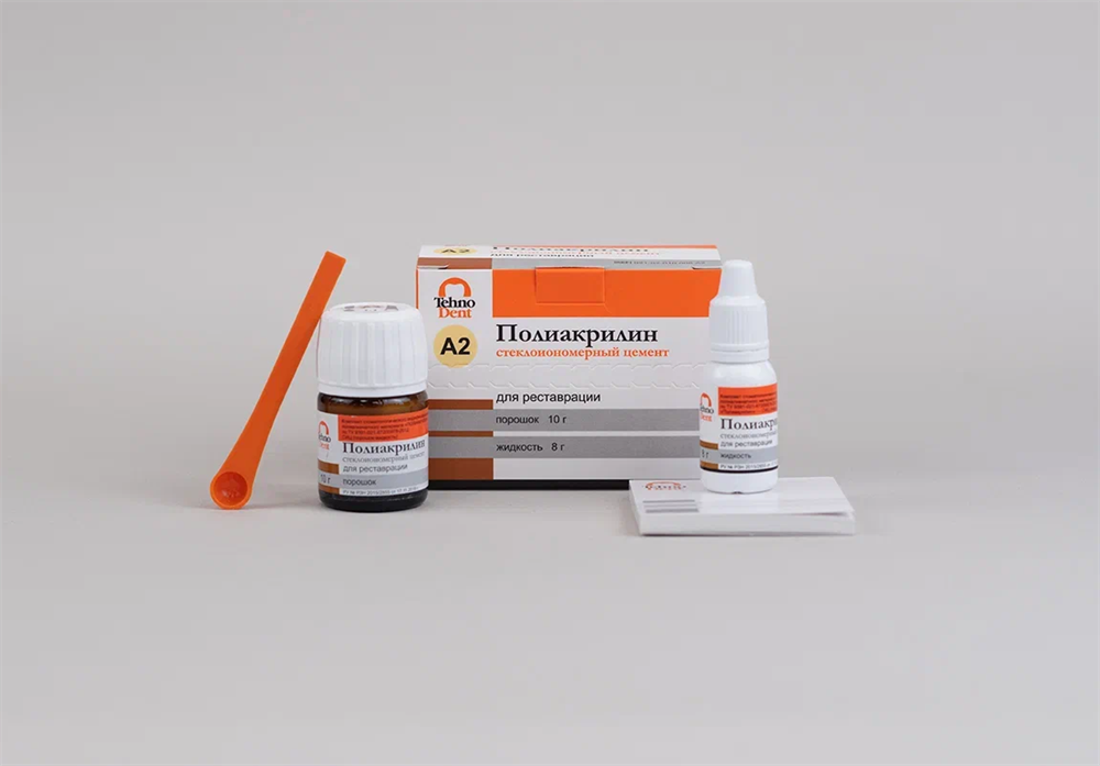Полиакрилин для реставрации, 10 г+8 г, цвет А2. СИЦ - стеклоиномерный цемент химического отверждения.
