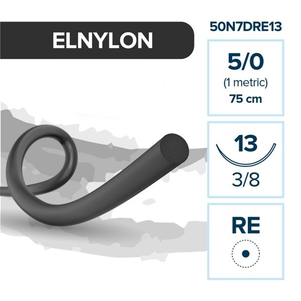Шовный материал ELNYLON состоит из сополимера полиамида 6/6.6. Это нейлоновая монофиламентная нить, атравматично проходящая через ткани. В стоматологии обычно используется, когда нужна прочная на разрыв мононить для сшивания тканей, которые длительное время находятся под напряжением.
