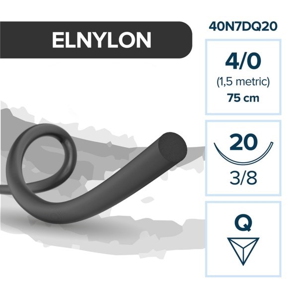 Шовный материал ELNYLON состоит из сополимера полиамида 6/6.6. Это нейлоновая монофиламентная нить, атравматично проходящая через ткани. В стоматологии обычно используется, когда нужна прочная на разрыв мононить для сшивания тканей, которые длительное время находятся под напряжением.