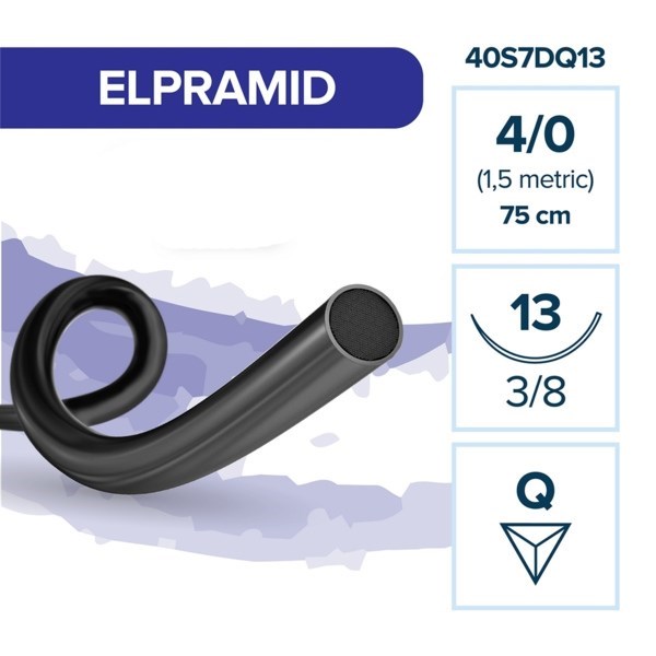 ELPRAMID — комплексная хирургическая нерассасывающаяся нить из полиамида 6.6 в оболочке из полиамида 6. Выполнена в черном или белом цвете.