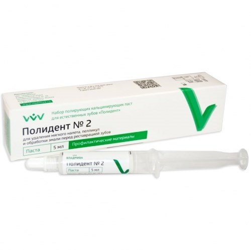 Описание: Полидент №2 паста (5 мл) ВладМиВаПаста «Полидент №2» (без фтора) содержит абразив, позволяющий производить очистку эмали и фиссур с минимальным риском повреждения их поверхности. Гидрофильный пастообразователь, придающий пасте пластичную консистенцию удобную в работе, позволяет легко удалять пасту водой с поверхности зубов.