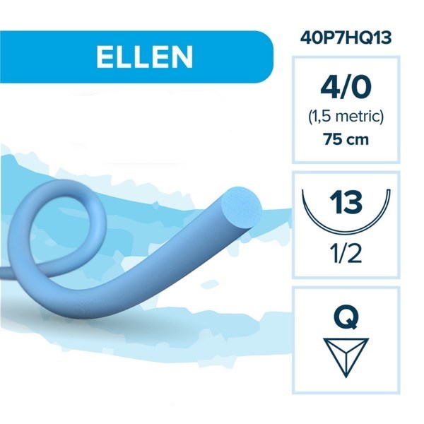 Шовный материал ELLEN — синтетическая нерассасывающаяся мононить из полипропилена. Материал практически не вызывает реакции в тканях ротовой полости, не токсичен, не впитывает жидкость из прокольного канала. Стоматологам следует осторожно работать с пролипропиленом — избегать излишнего давления иглодержателем и перегибов, которые в большинстве случаев разрушают нить после операции. Такая травма может привести к перелому шва с неприятными последствиями в раннем послеоперационном периоде.