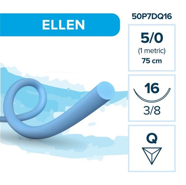 Полипропилен ELLEN — нерассасывающаяся нить, 3/8, обратно-режущая игла 16 мм, толщина 5/0(1), 75 см, 12 шт