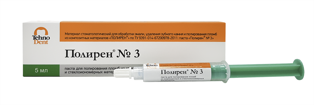 Полирен №3. Паста на основе оксида аллюминия (корунд) для полирования пломб из композитных и стеклоиномерных материалов, с эффектом "сухого" блеска (5 мл, шприц)