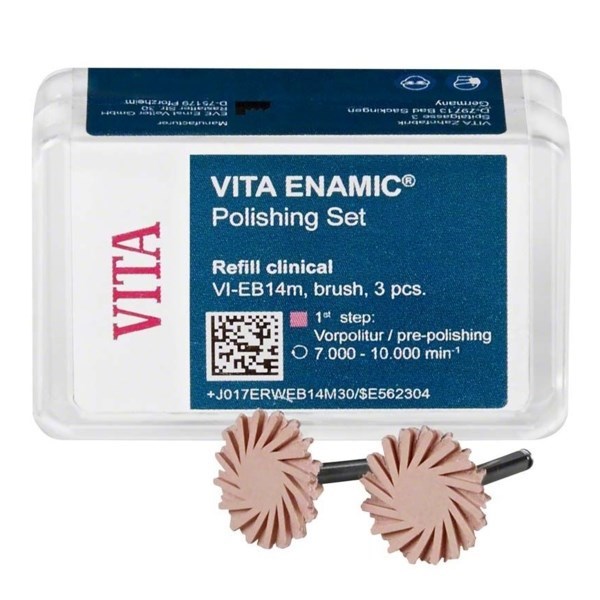 Наборы для полировки VITA ENAMIC предназначены для бережной, экономичной и соответствующей материалу обработки поверхностей реставраций из гибридной керамики в клинике и лаборатории. В комплекты входят различные полировальные диски для предварительной и окончательной обработки. Эти инструменты позволяют бережно полировать поверхность окклюзии, бугорки, фиссуры и контактные точки реставраций. В конечном результате инструменты для полировки обеспечивают превосходный блеск реставрации.
