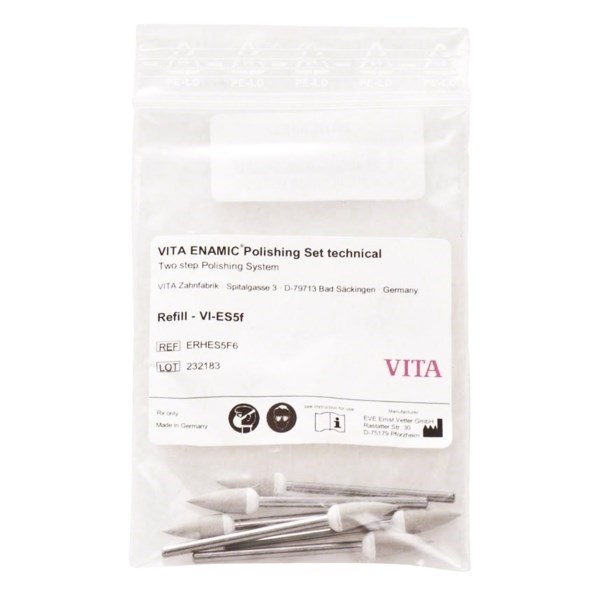 Наборы для полировки VITA ENAMIC предназначены для бережной, экономичной и соответствующей материалу обработки поверхностей реставраций из гибридной керамики в клинике и лаборатории. В комплекты входят различные полировальные диски для предварительной и окончательной обработки. Эти инструменты позволяют бережно полировать поверхность окклюзии, бугорки, фиссуры и контактные точки реставраций. В конечном результате инструменты для полировки обеспечивают превосходный блеск реставрации.