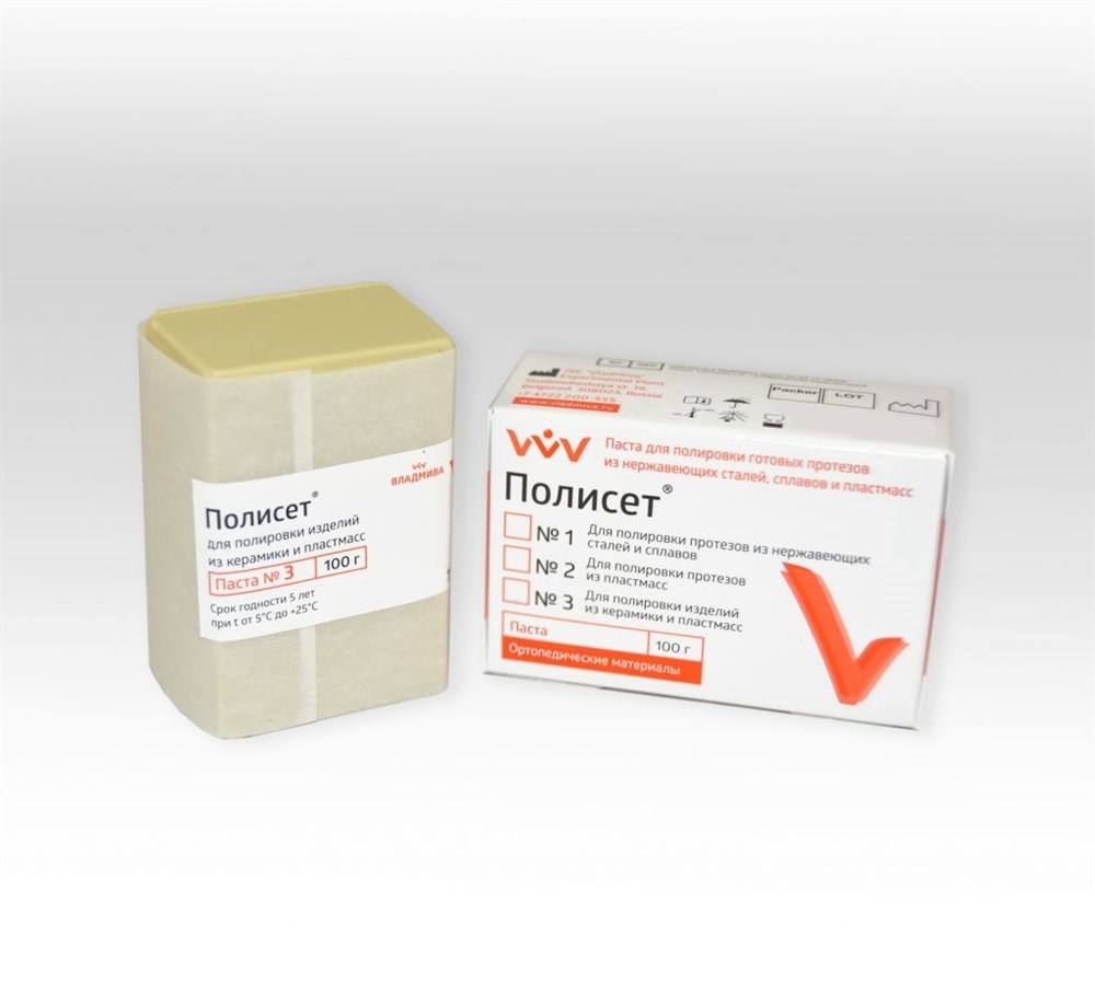 Пасты «Полисет» для полирования стоматологических изделий содержат различные абразивы, поверхностно-активные и связывающие вещества.