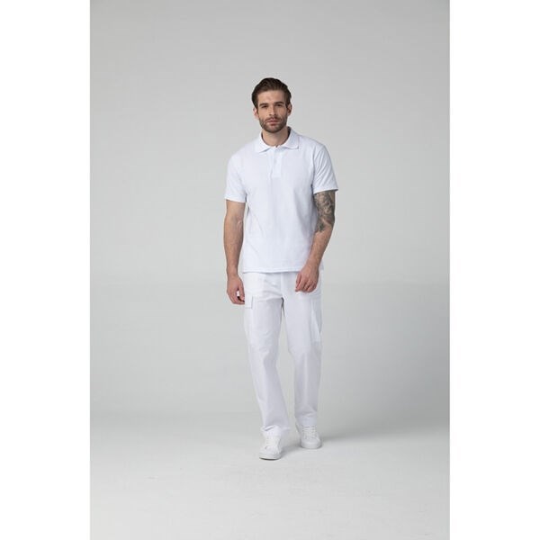 Мужская медицинская рубашка поло Dr.Nice с коротким рукавом и отложным воротничком. Застежка на пуговицах, в боковых швах имеются разрезы.