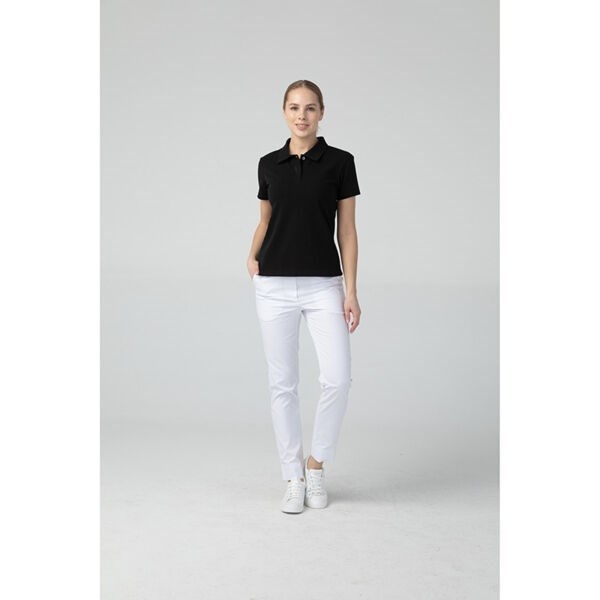 Женская медицинская рубашка поло Dr.Nice с коротким рукавом и отложным воротничком. Застежка на пуговицах, в боковых швах имеются разрезы.
