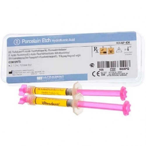 Описание: Porcelain Etch Refil-гель плавиковой кислоты (2шпр.х 1,2мл), УльтрадентPorcelain Etch - протравливающий гель на основе 9% плавиковой (фтористоводородной) кислоты для создания микрошероховатости поверхности керамики. Комплект поставки Porcelain Etch - 2 шприца по 1,2 мл