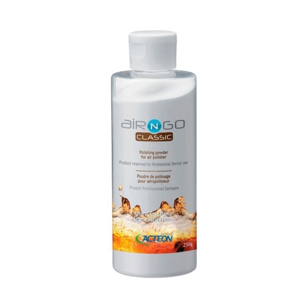Порошок Air-N-Go Classic Powder изготовлен на основе бикарбоната натрия и предназначен для наддесневой обработки. Благодаря незначительным сокращениям микрочастиц при контакте с водой, полировка становится более эффективной, затем порошок плавно растворяется, что позволяет избежать травмирования мягких тканей. Идеальный баланс между приятным вкусом мяты и сахарином натрия исключает любой неприятный соленый привкус и оказывает освежающий эффект. Совместимы с наконечником AIR-N-GO easy и не требуют смены инструмента.