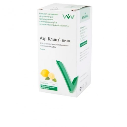 Описание: Порошок Аэр-Клинз ПРОФ Лимон (на основе соды) 65 мкм. 300г, ВладмиваАэр-Клинз-ПРОФ - порошок для профилактической обработки зубов, 300г, "ВладМиВа".