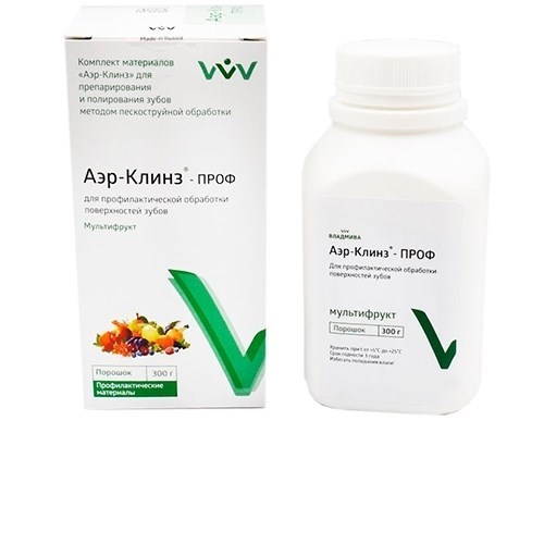 Описание: Порошок Аэр-Клинз ПРОФ Мультифрукт (на основе соды) 65 мкм. 300г, ВладмиваАэр-Клинз-ПРОФ - порошок для профилактической обработки зубов, 300г, "ВладМиВа".