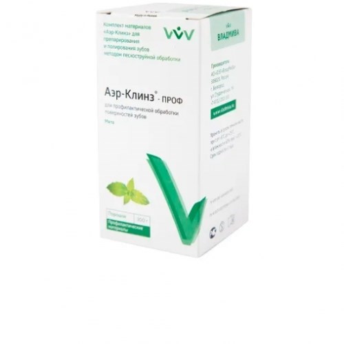 Описание: Порошок Аэр-Клинз ПРОФ Мята (на основе соды) 65 мкм./300г, ВладмиваАэр-Клинз-ПРОФ - порошок для профилактической обработки зубов, 300г, "ВладМиВа".