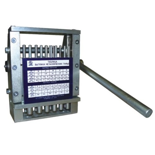 Габаритные размеры, мм, не более - 190х95х230,масса, кг, не более - 16, толщина штампуемого металла, мм, не более - 0,30 заготовки для первоначальной вытяжки: - диск, диаметр, мм, не более - 20, 22, 24; - гильза, наружный диаметр, мм, не более - 16, № заказа: 3.205.