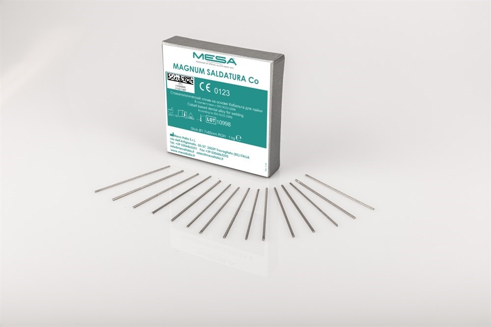 Припой SALDATURA Co, пруток Ø 2 мм, длина 75 мм, 50 г. Для сплавов Magnum Splendidum, Magnum HBA и других сплавов на основе CoCr, неполированный. Можно поркыть керамикой. Не содержит никель.