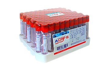 Вакуумная пробирка с активатором свертывания крови. Стенки пробирок данного типа покрыты сухим активатором образования сгустка (SiO2) для ускорения свертывания крови. Активатор инертен, нерастворим в воде, органических растворителях, стойкий к действию ферментов и клеток крови. Смешивание крови с ним не влияет на результаты анализов. Ускорение процесса коагуляции существенно сокращает время подготовки биологической пробы.