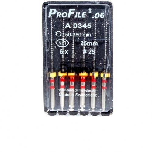 ProFile.06 №25 (25мм) (Профайлы) - это новый тип никель-титановых (NiTi) вращающихся эндодонтических инструментов. От стандартных инструментов их отличают четыре особенности.