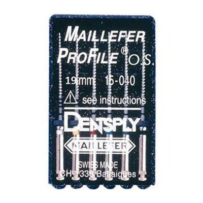 ProFile O.S. Набор каналорасширителей машинных. Изготовлены из никель-титанового сплава треугольного поперечного сечения, хвостовик тип 1- RA для углового наконечника. Длина оперативной части 19 мм.