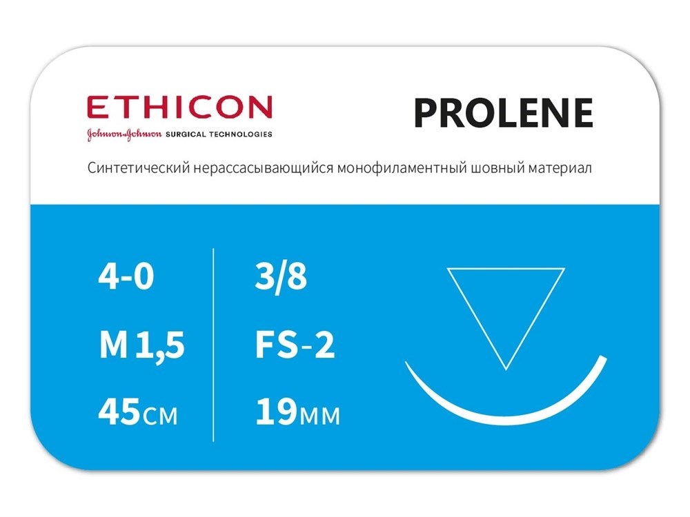 W8683 Пролен 4/0, обратно-режущая игла 19 мм, 45 см, 3/8 окр, ETHICON (США)