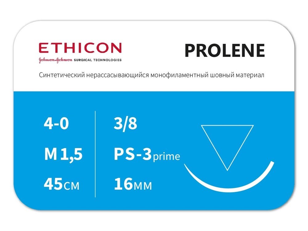 Пролен 4/0, 45 см, Прайм обратно-режущая, 16мм, 3/8, ETHICON (США)
