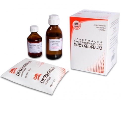 Описание: Протакрил М - пластмасса самотвердеющая, СтомаПротакрил М - пластмасса холодной полимеризации, используется для временных пластиночных съемных протезов, ортодонтических аппаратов, съемных шин-протезов, ремонта и реставрация съемных зубных протезов.