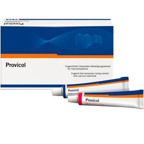Описание: Provicol 1075 - (25+25г), VOCOПровикол (в тюбике) - это легко поддающийся обработке, не содержащий эвгенола цемент с гидроокисью кальция, который не влияет на затвердевание пломбировочного и фиксирующего материала на композитной основе. В случае проявления аллергии на эвгенол применяется Провикол.