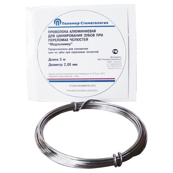 Проволока алюминиевая для наложения шин на зубы при переломах челюстей.