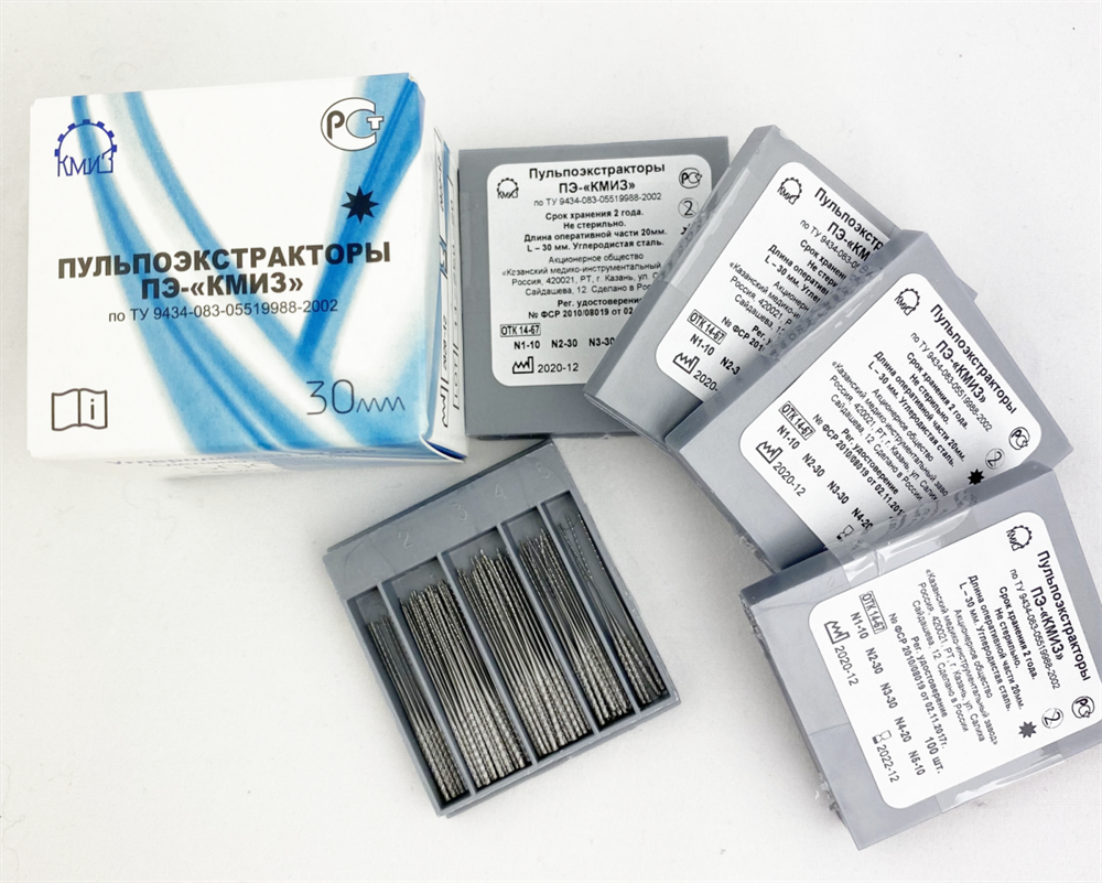 Пульпоэкстракторы короткие 500 шт/уп. длина 30 мм, ассорти, № 25 (50 шт.), №30 (150 шт), №35 (150 шт), №40 (100 шт.),№50 (50 шт)