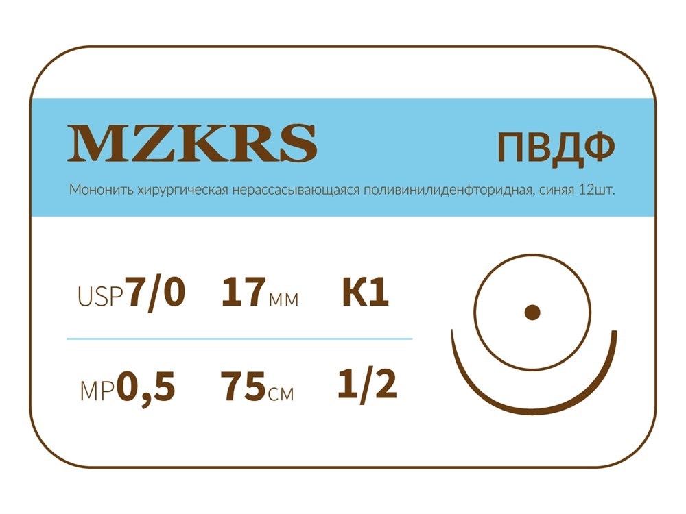 ПВДФ - хирургическая нить поливинилиденфторидная1712К1-Premium-7/0 (0.5)45 ПВДФ хирургическая нить поливинилиденфторидная, MZKRS (Россия)