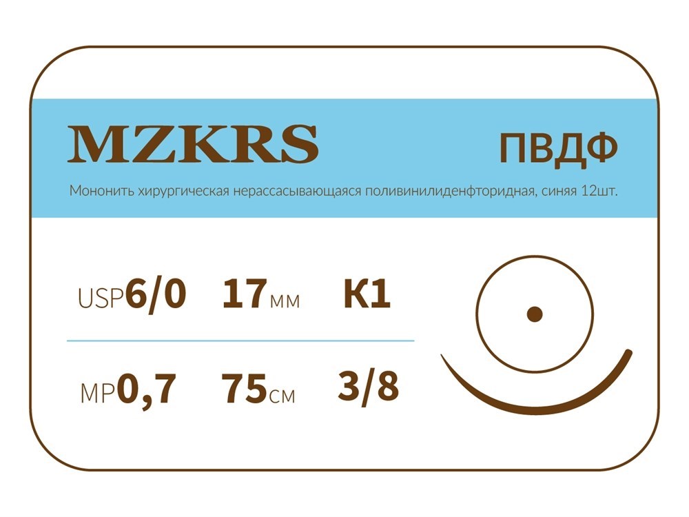 ПВДФ - хирургическая нить поливинилиденфторидная1738К1-Premium-6/0 (0.7)75 ПВДФ хирургическая нить поливинилиденфторидная, MZKRS (Россия)