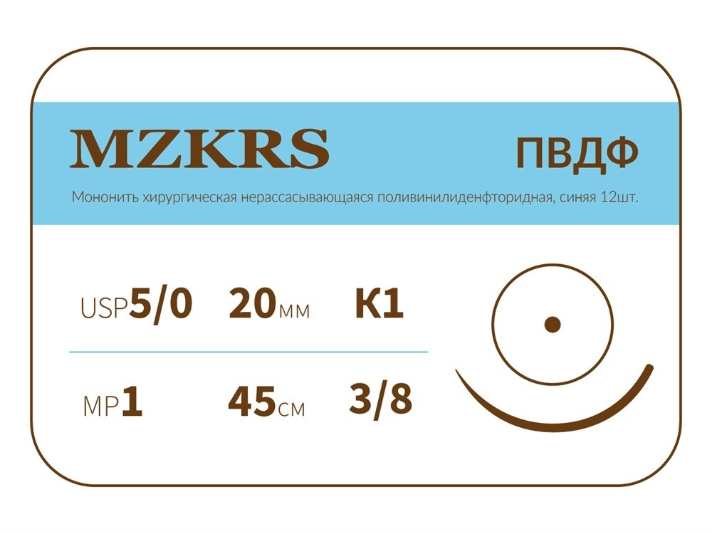 ПВДФ хирургическая нить поливинилиденфторидная2038К1-Premium-5/0 (1)45- ПВДФ хирургическая нить поливинилиденфторидная, MZKRS (Россия)