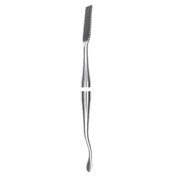 Двусторонний рашпиль для прямой резки кости серии Miller используется для придания формы и финальной обработки, сглаживания кости. Прямые рабочие части с поперечными острыми кромками аккуратно и быстро удаляют лишнюю твердую ткань.