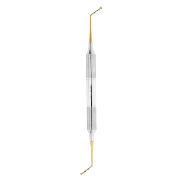Рабочие части и функциональные стержни стоматологического инструмента покрыты нитрид титановым материалом, увеличивающим срок службы инструмента. Благодаря золотому цвету покрытия рабочая часть распатора хорошо выделяется при проведении манипуляций в ротовой полости.