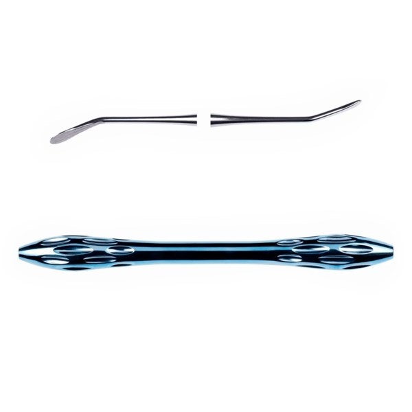 Распатор для туннельной техники предназначен для проведения хирургических манипуляций в пародонтальной хирургии и имплантологии: для отслаивания слизистой оболочки от комплекса подслизистых тканей, а также для отделения подслизистых тканей и мышечных тканей от надкостницы на запланированную глубину внутритуннельным доступом.
