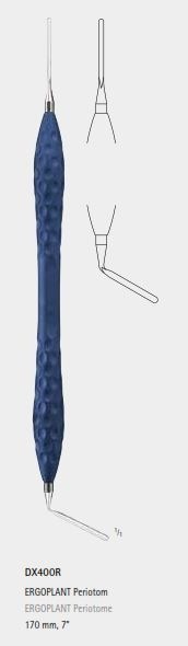 Распатор, ERGOPLANT, длина 170 мм, DX400R, B.Braun (Aesculap, Германия) используется для отделения надкостницы от кости и для подготовки слизисто-надкостничных лоскутов к альвеолярной остеотомии. Инструмент имеет эргономичную ручку синего цвета, обеспечивающая удобный захват в руке. Рабочая часть двухсторонняя, выполнена из медицинской нержавеющей стали, благодаря точной геометрии и качественной заточке обеспечивается высокий уровень безопасности и точность при выполнении операций.