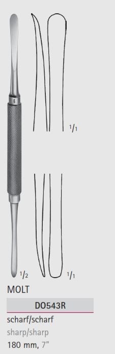Распатор, по MOLT, длина 180 мм, DO543R, B.Braun (Aesculap, Германия) выполнен из медицинской нержавеющей стали, имеет эргономичную, удобную ручку на которую нанесен ретенционный узор, что гарантирует удобный захват инструмента и позволяет надежно зафиксировать распатор B.Braun в руке. Благодаря точной геометрии и качественной заточке обеспечивается высокий уровень безопасности и точность при выполнении операций.