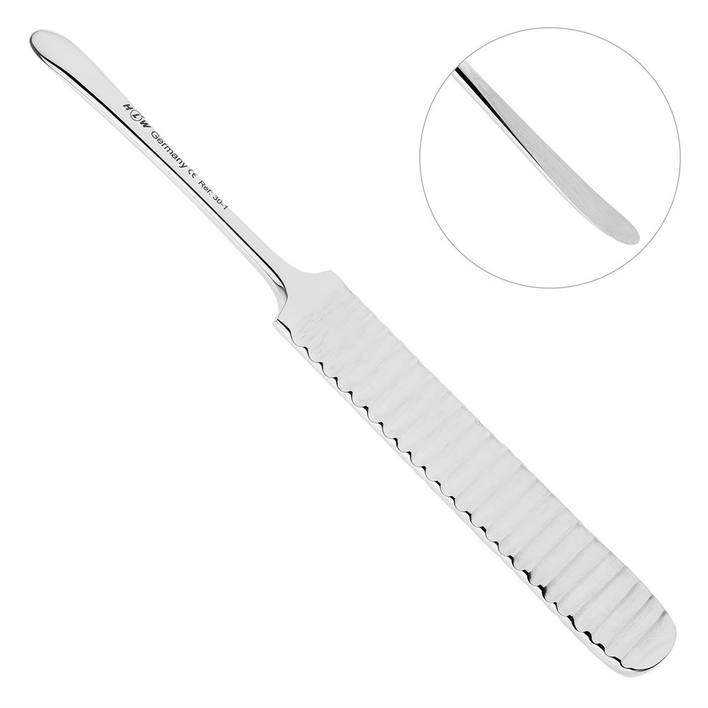 Компанией HLW Dental Instruments изготовлен стоматологический распатор Williger с шириной рабочей части 6 мм. Инструмент предназначен для отделения слизисто-надкостничного лоскута от костной основы.
