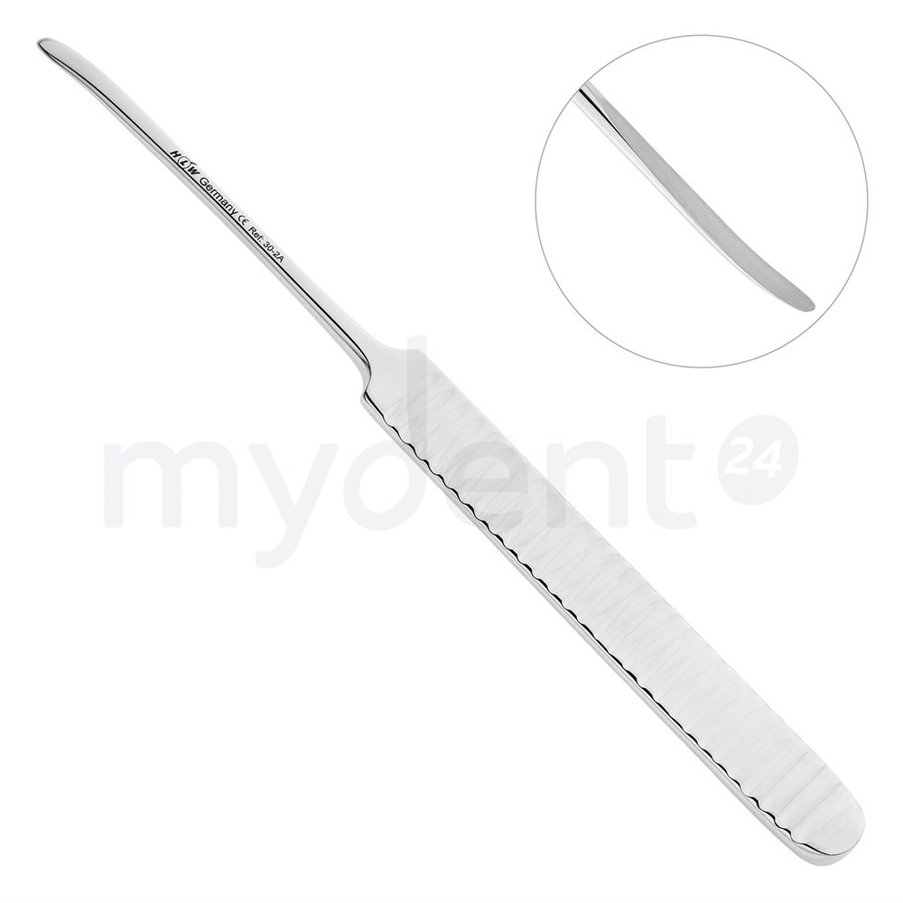 Стоматологический распатор Williger с шириной рабочей части 4 мм немецкого бренда-производителя HLW Dental Instruments предназначен для отделения слизисто-надкостничного лоскута от костной основы.