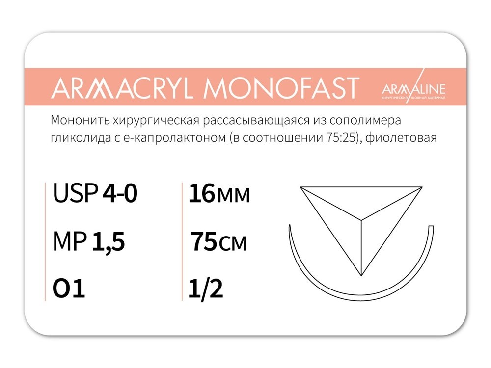 ARMACRYL MONOFAST/Армакрил монофаст (4-0) 75 см - материал хирургический шовный стерильный с атравматической обратно-режущей иглой