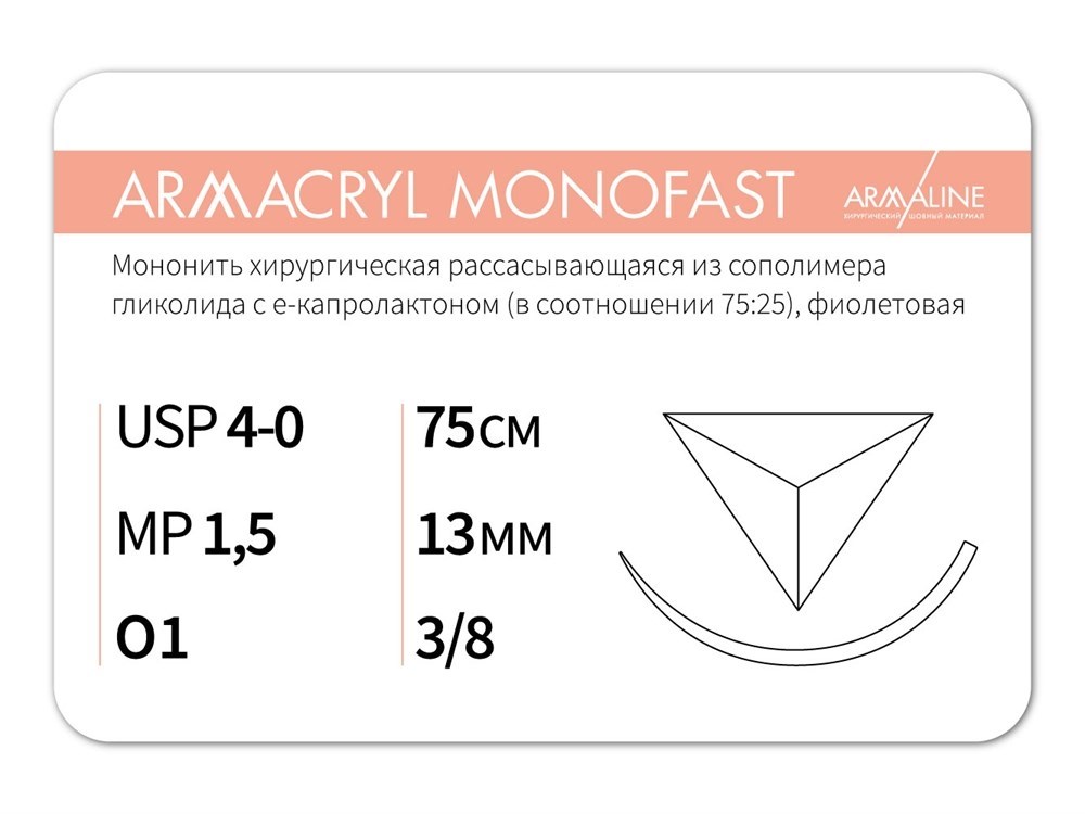 ARMACRYL MONOFAST/Армакрил монофаст (4-0) 75 см - материал хирургический шовный стерильный с атравматической обратно-режущей иглой